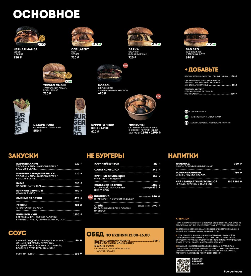 Отличительная черта Burger Heroes, расположившемся в баре "Варка", — одноименный бургер с копченым сулугуни и луком-конфи: в других бургерных его не найти. Завсегдатаи бара утверждают, что именно этот бургер — тайное сокровище Burger Heroes, и спорить с ними мы, конечно, не будем.