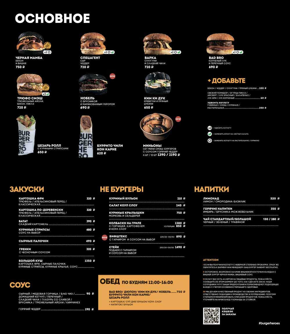 ПОЛНОЕ МЕНЮ БУРГЕР-БАРА